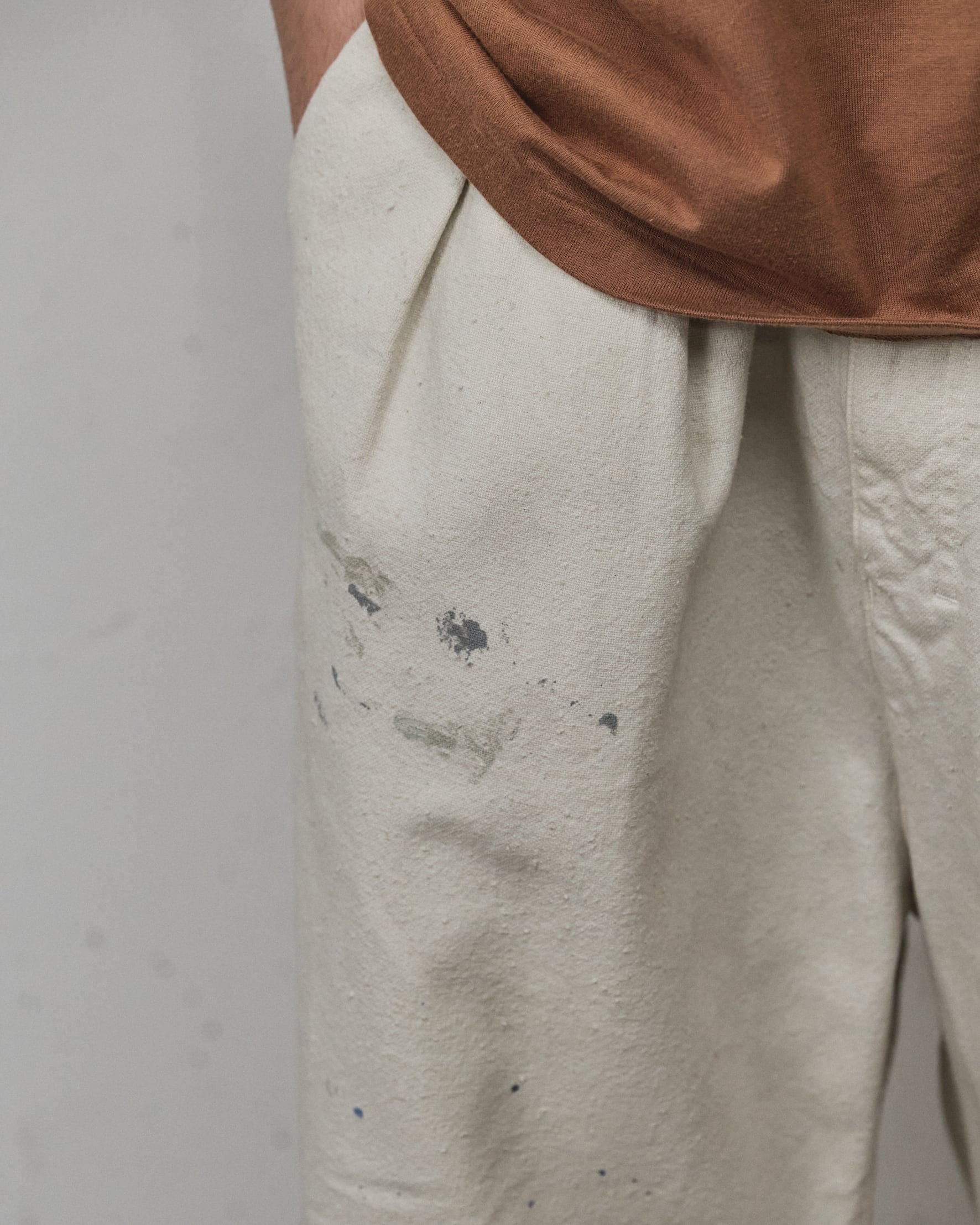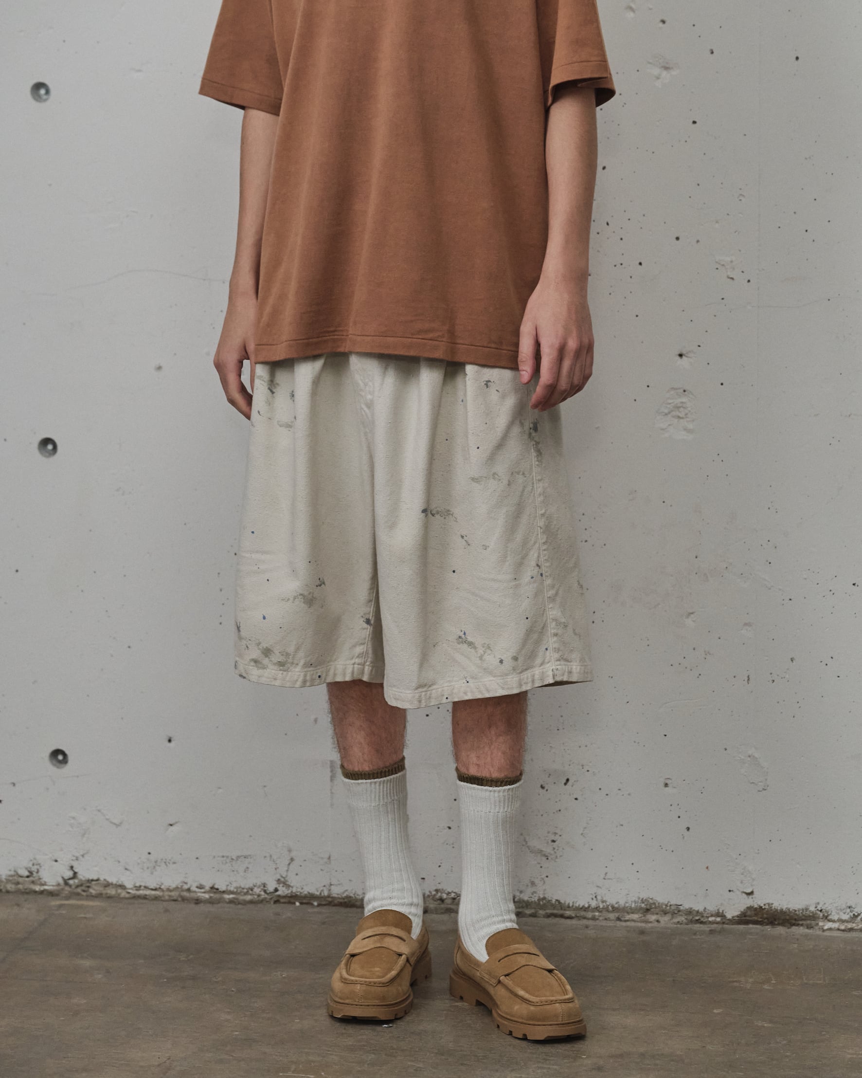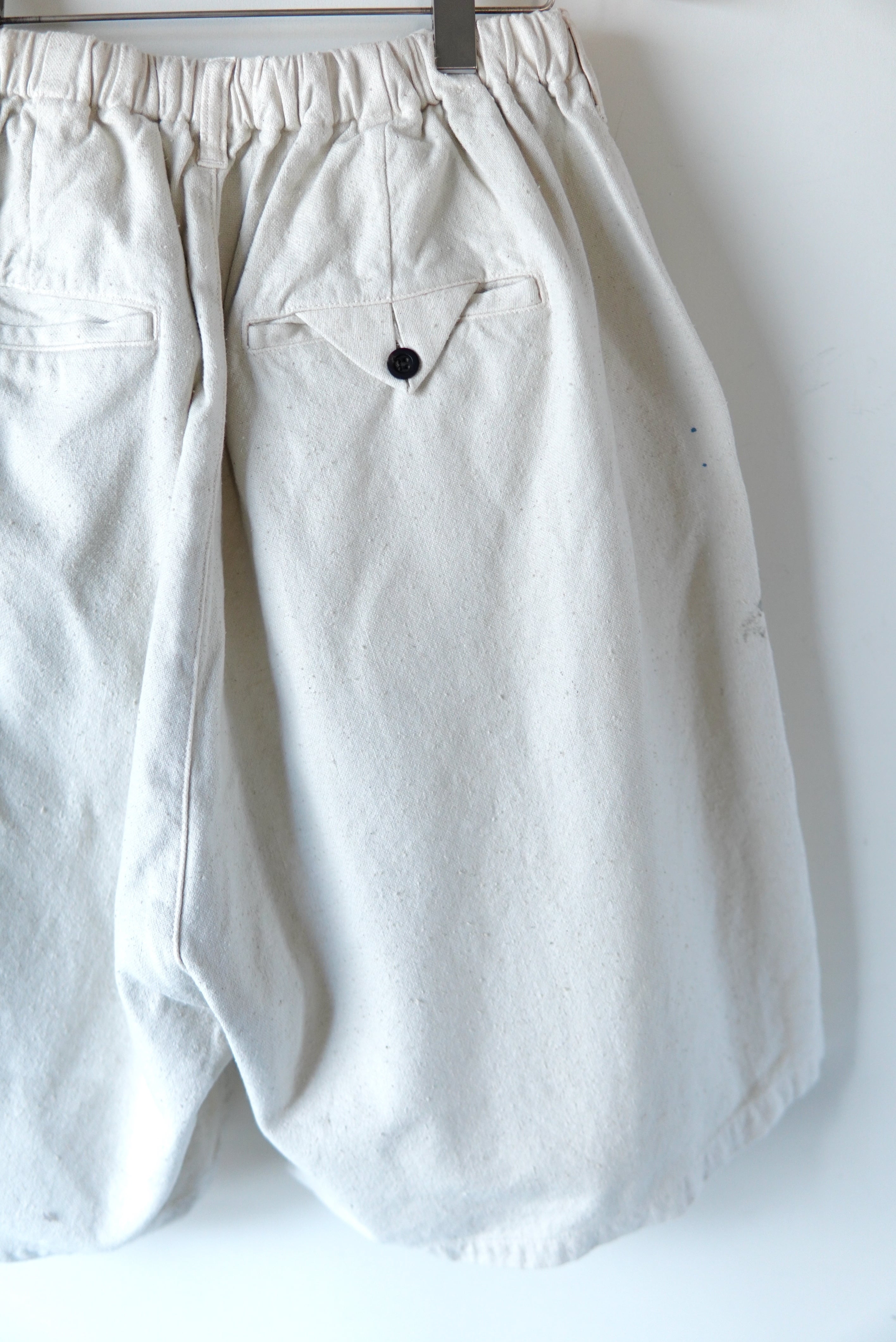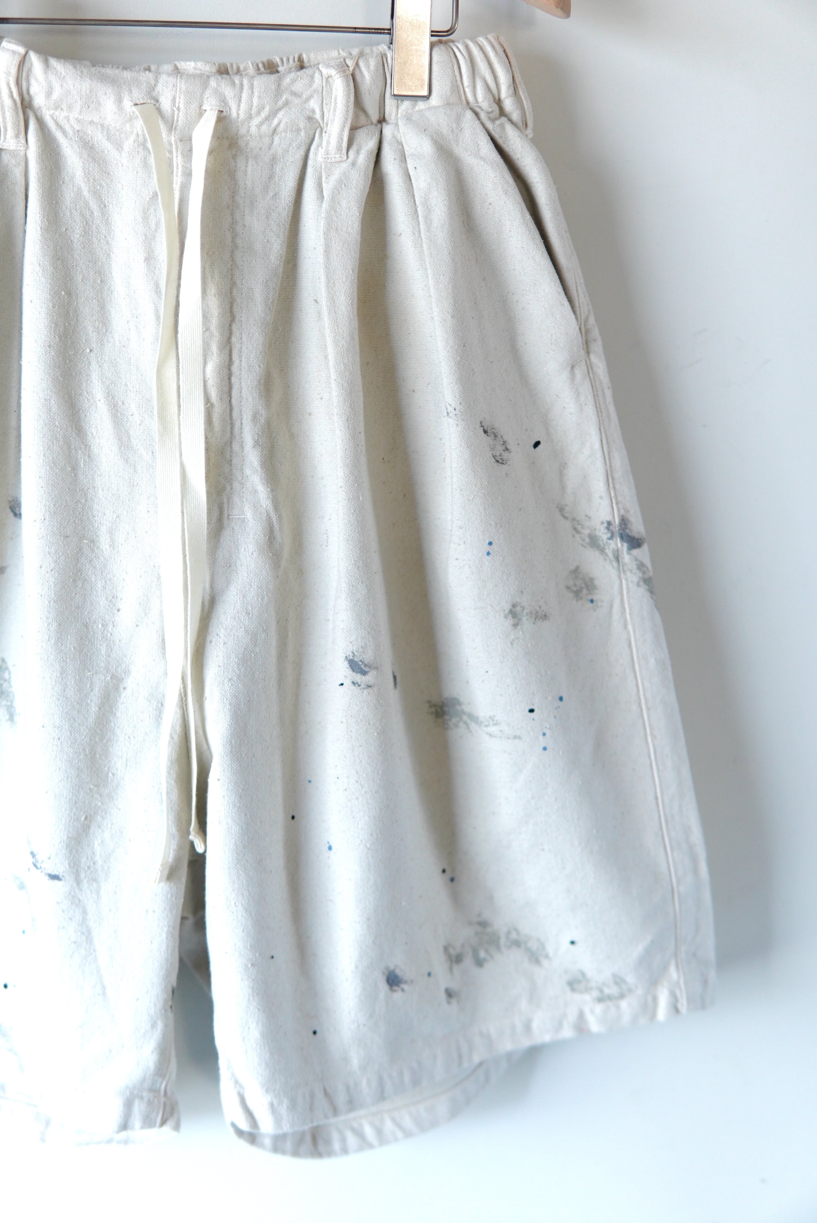 オリジナルで織り上げたダッククロスのワイドショーツ。