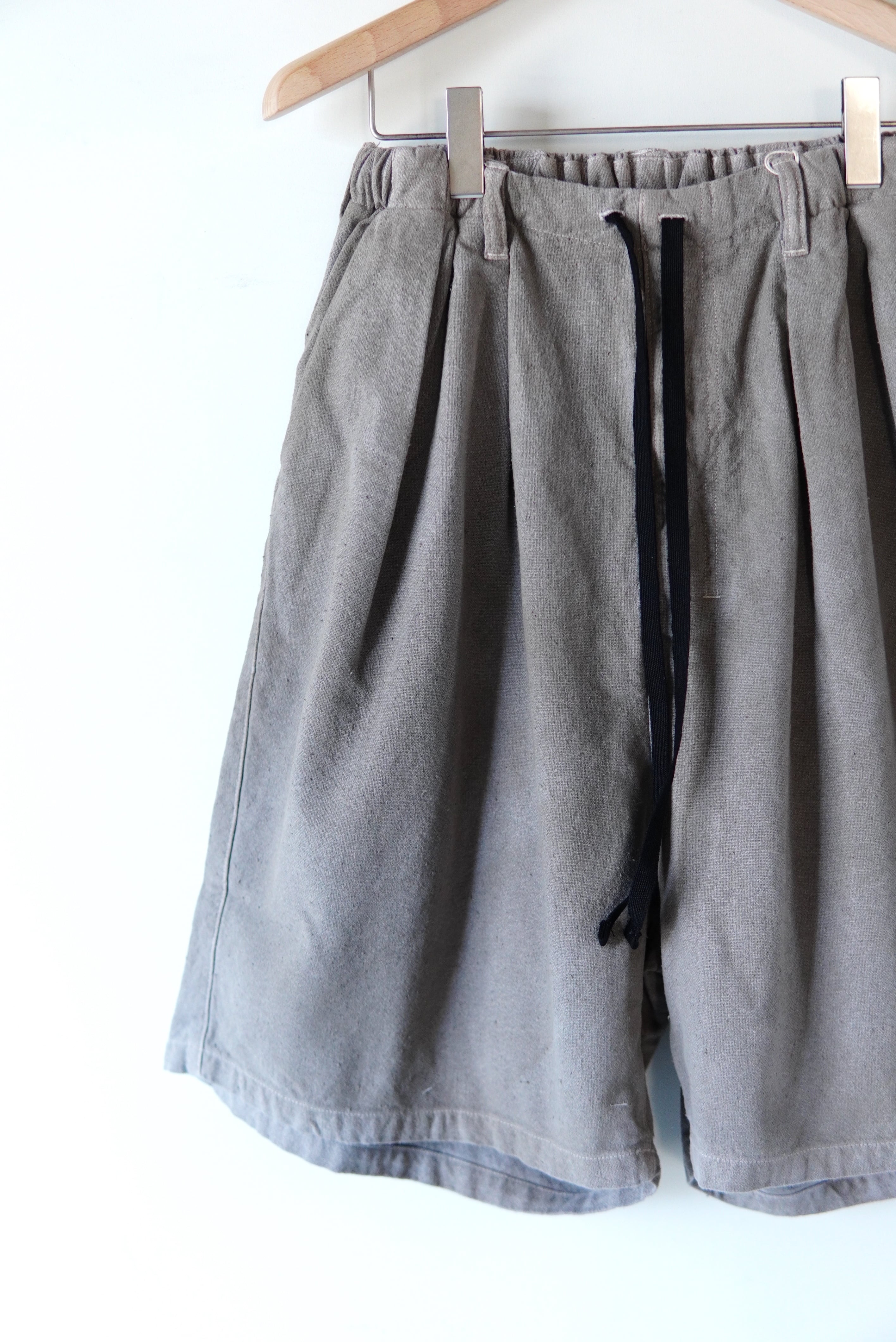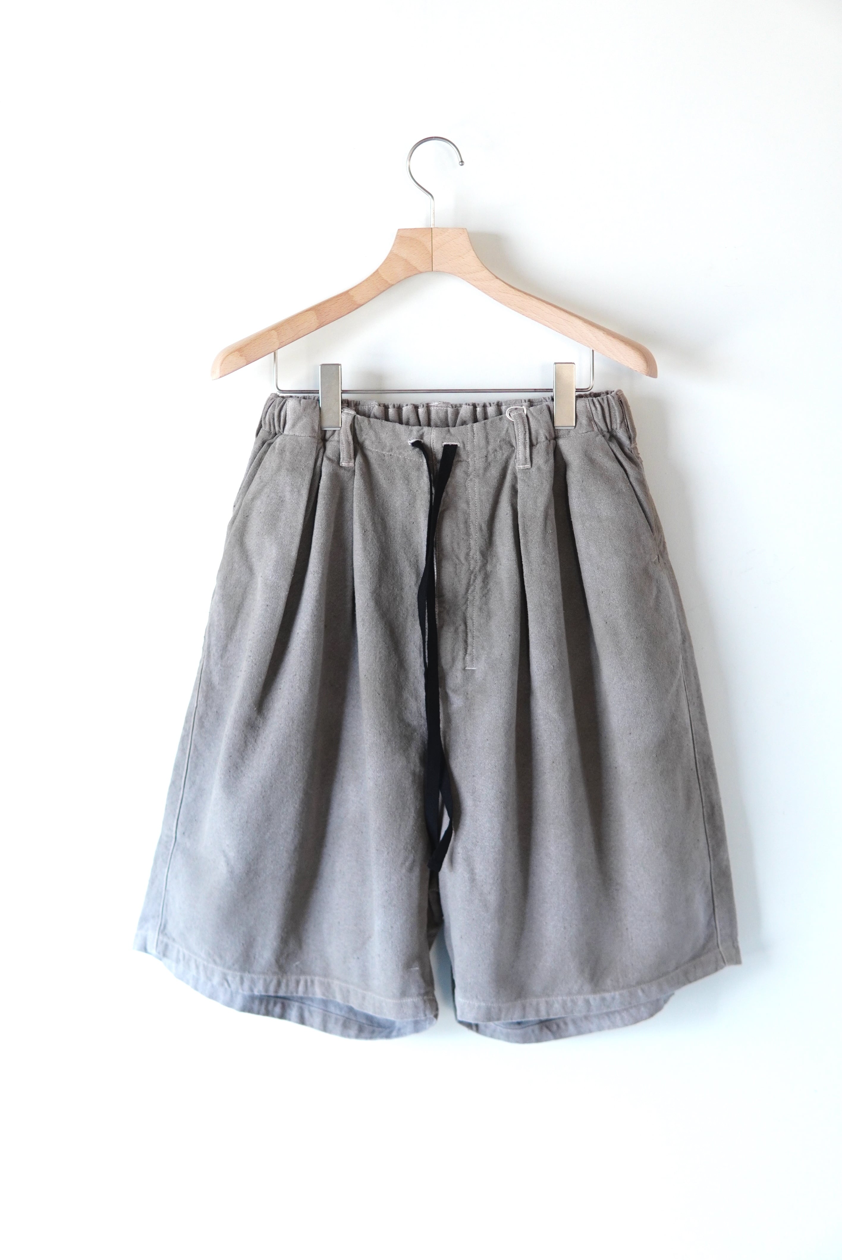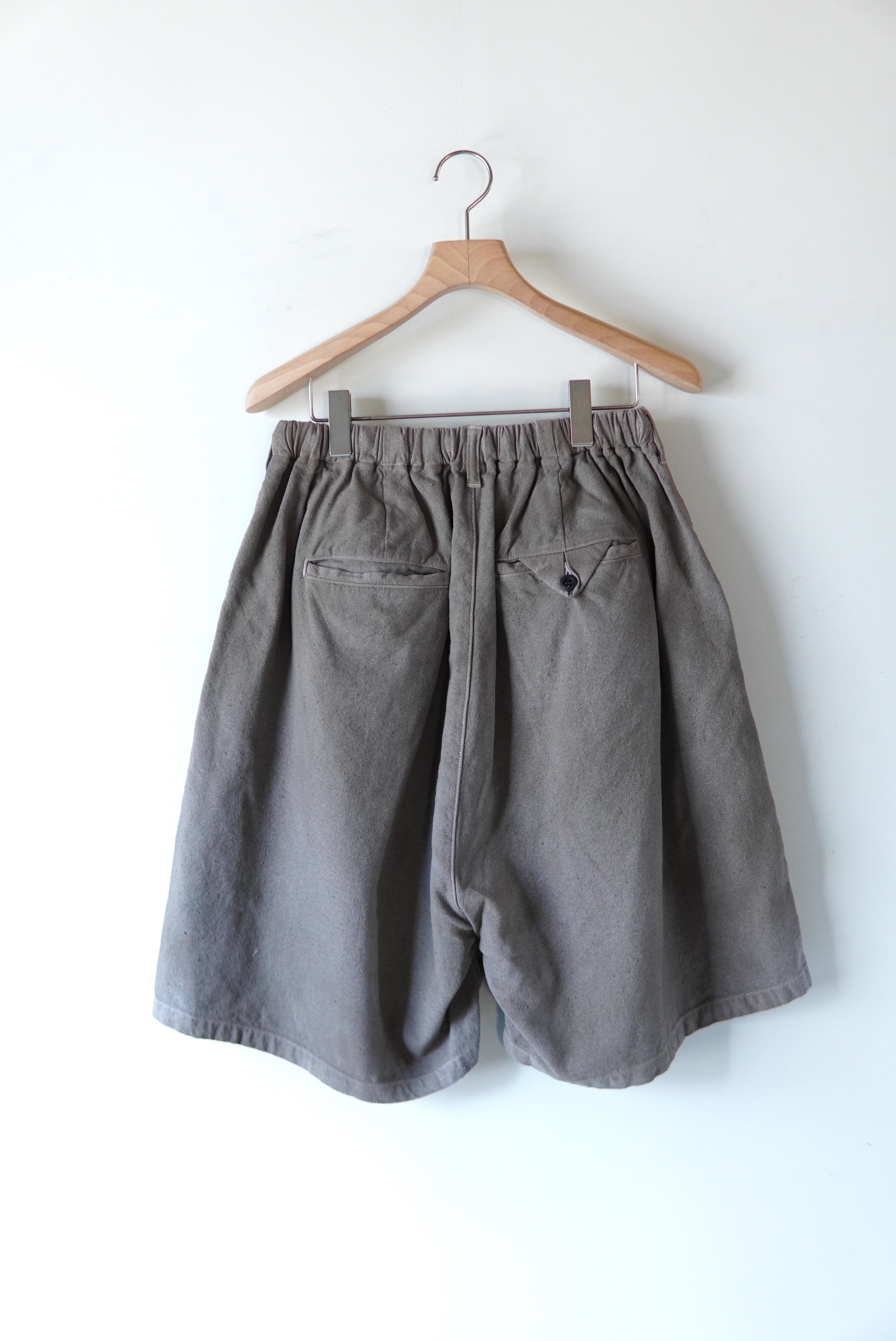 オリジナルで織り上げたダッククロスのワイドショーツ。