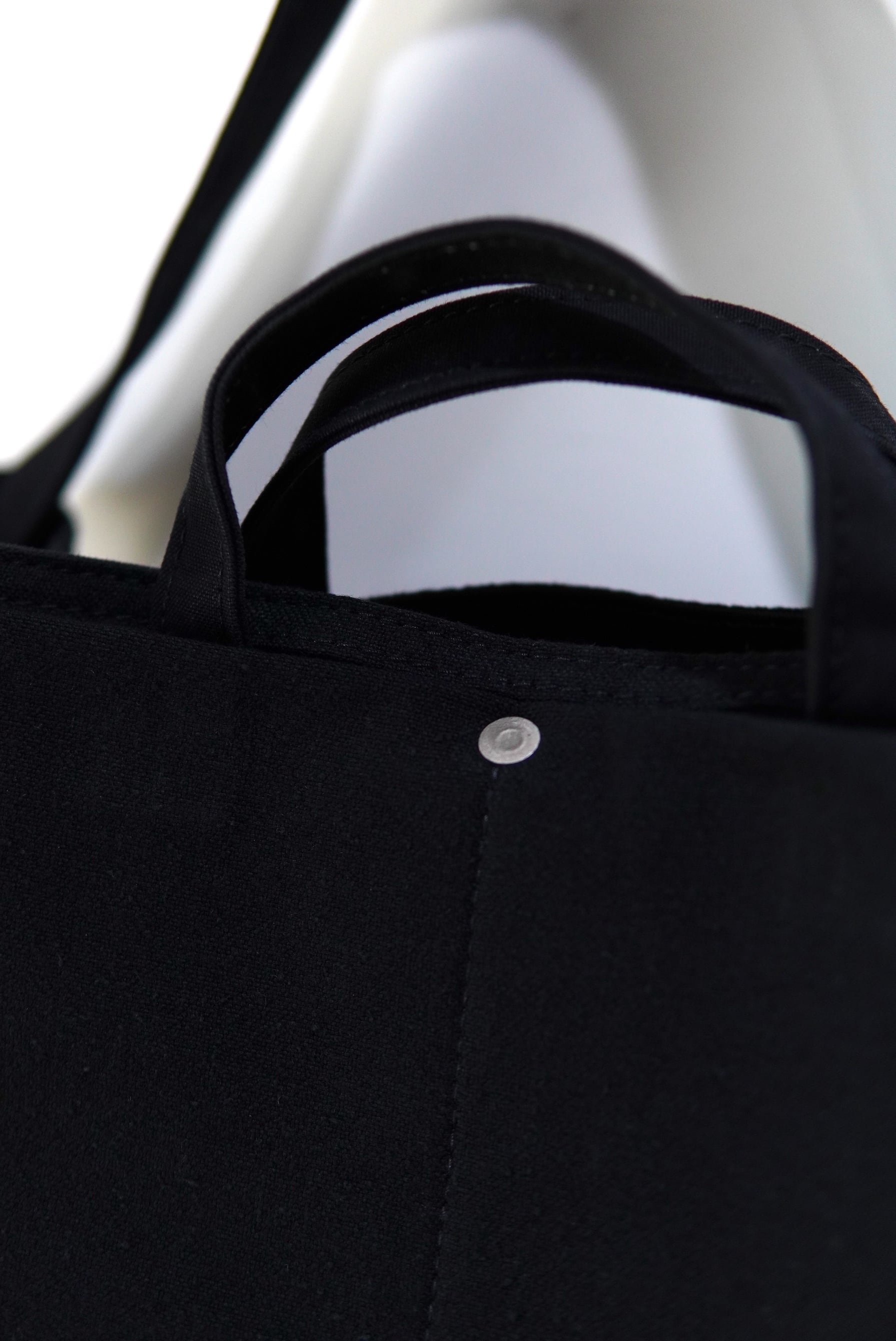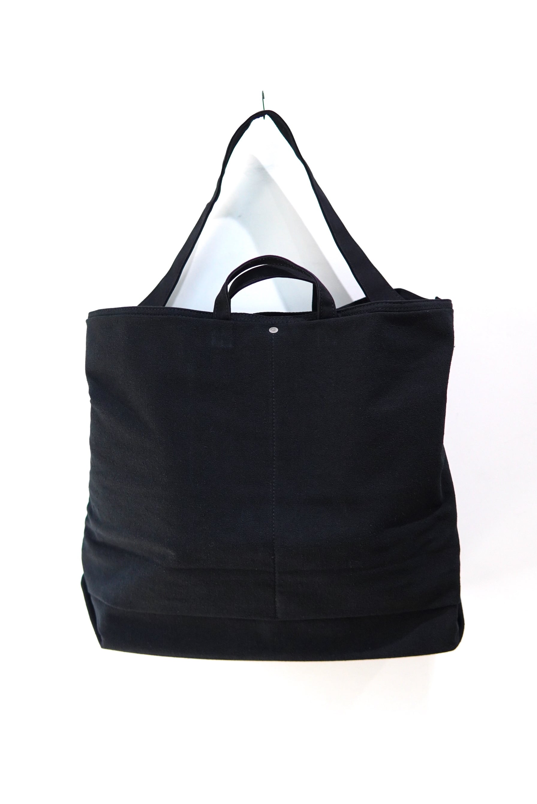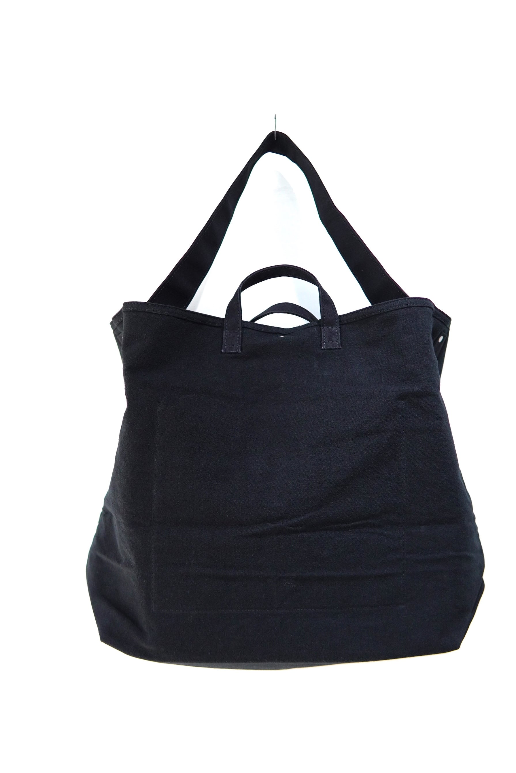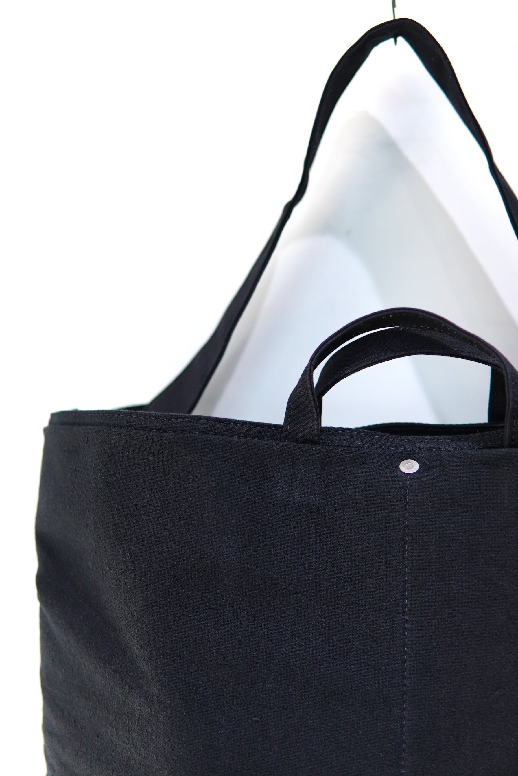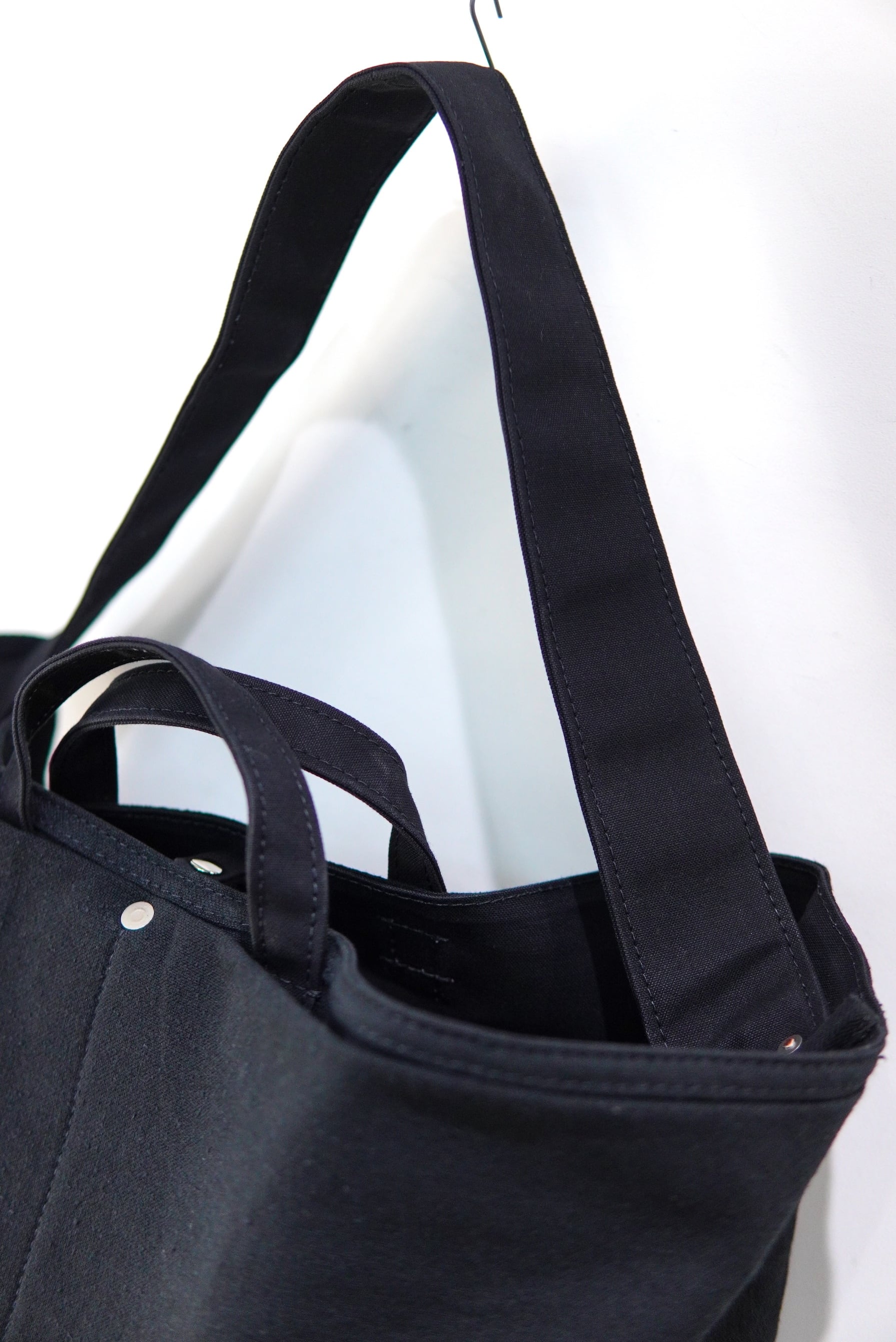 トートとしての手提げや肩掛けでも良し、ボリュームを活かして丸め込んで持つのも格好良いです。