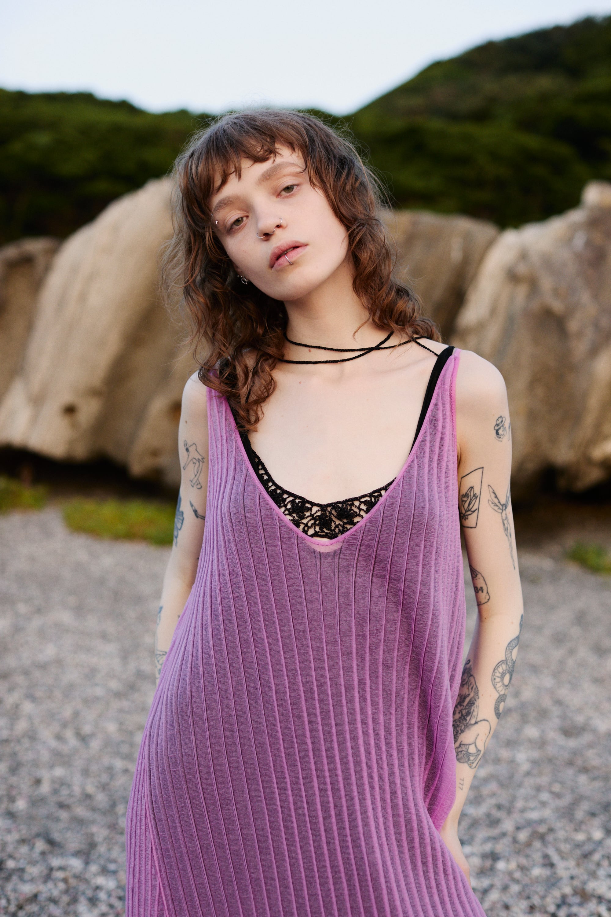 さらに、裾に通した透明なコードが、ニットでは生み出せない揺れとフォルムをプラス。たっぷりとした分量感がありながらも、軽やかな透け感が魅力です。