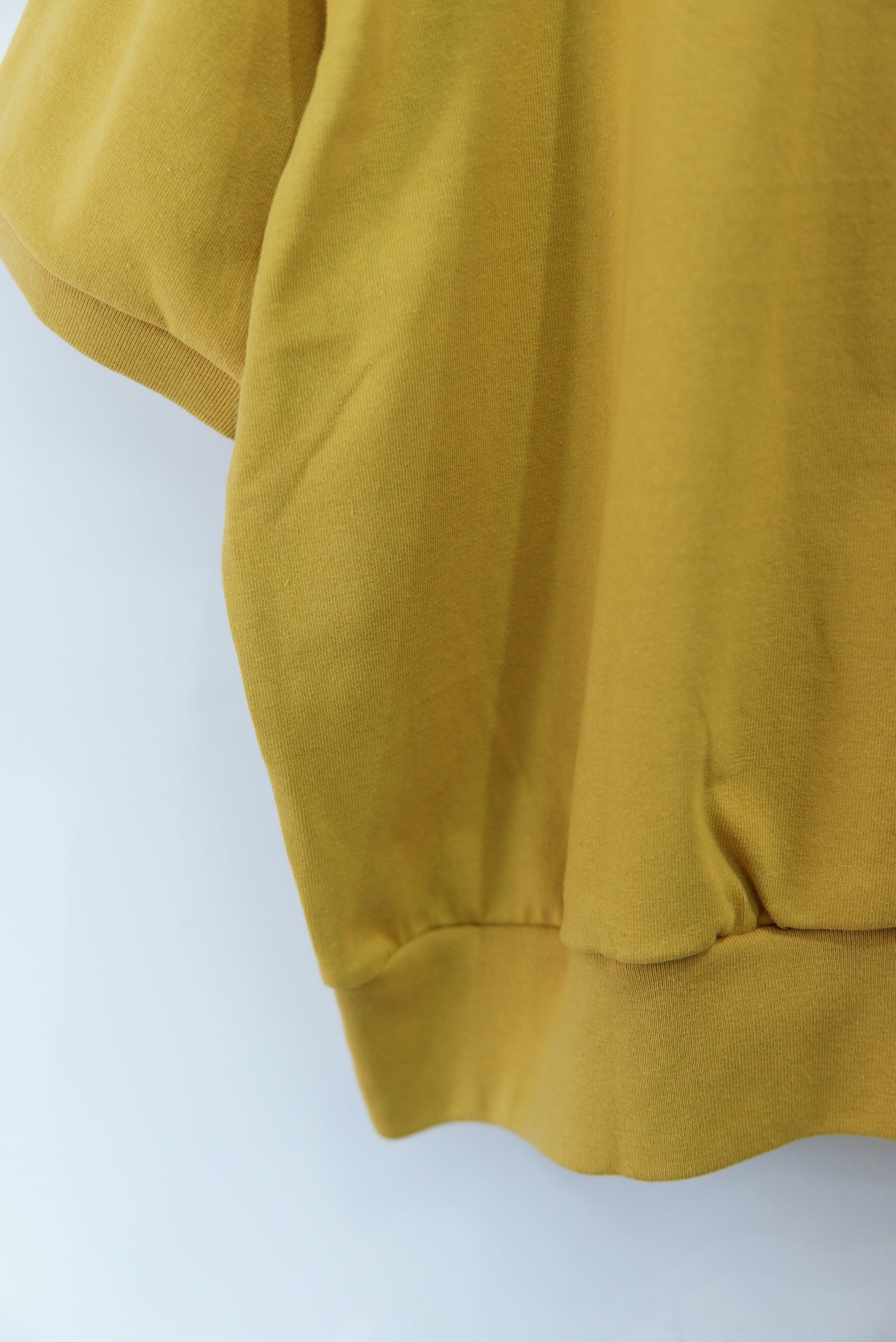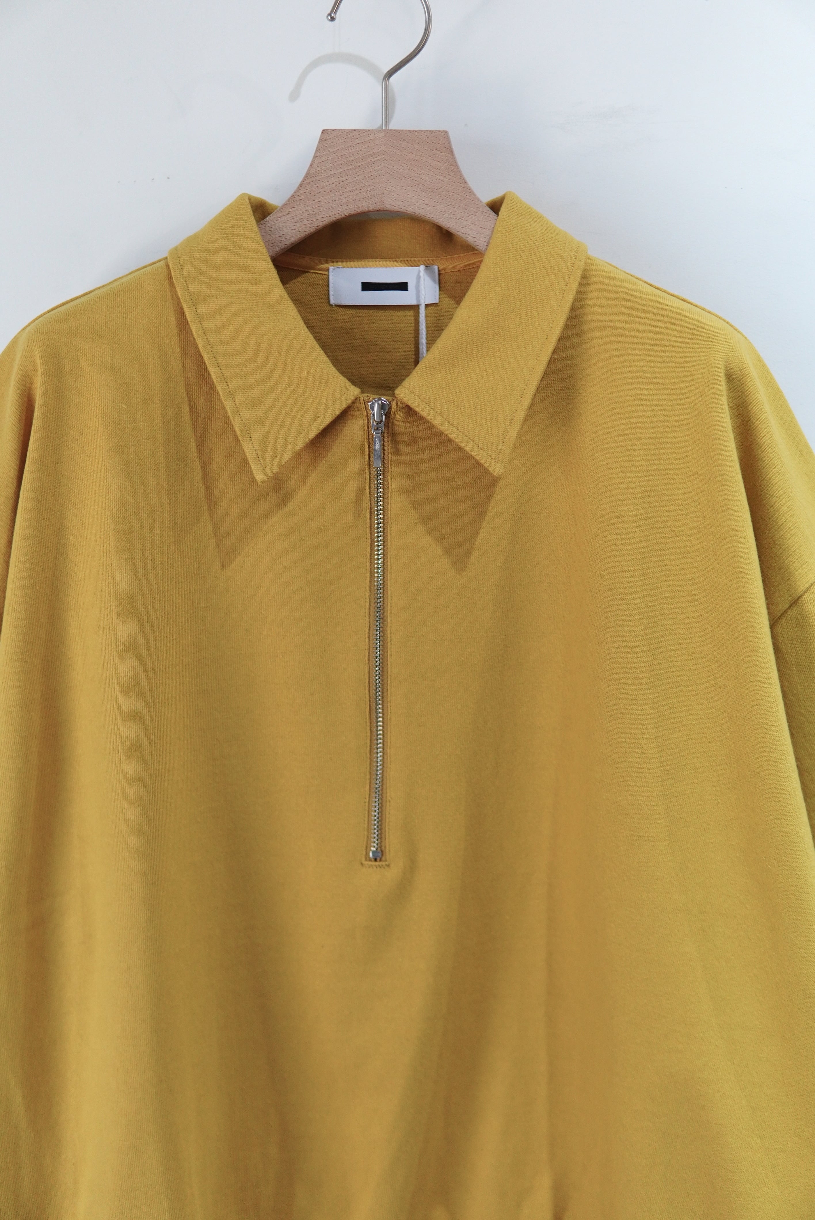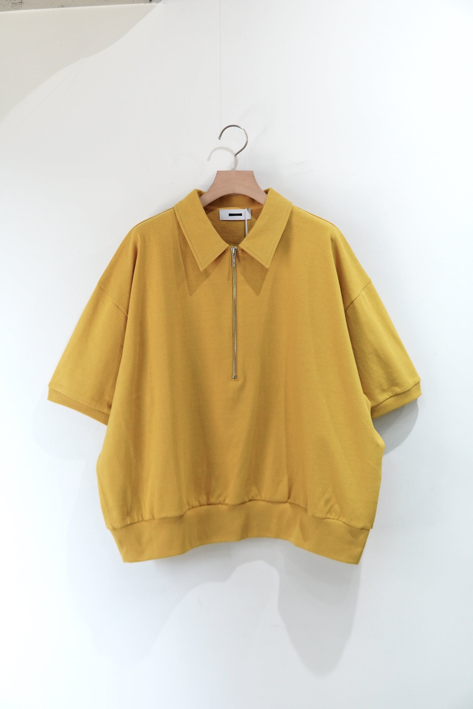 REVERBERATEのシグネチャーモデルであるハーフジップの半袖仕様。 全体のバランスを見直し、コンパクトなシルエットに仕上げました。 度詰めの天竺素材を使用しております。 MATERIAL 100% COTTON size 3 着丈 62cm 身幅 68cm 肩幅 60cm 袖丈 24cm