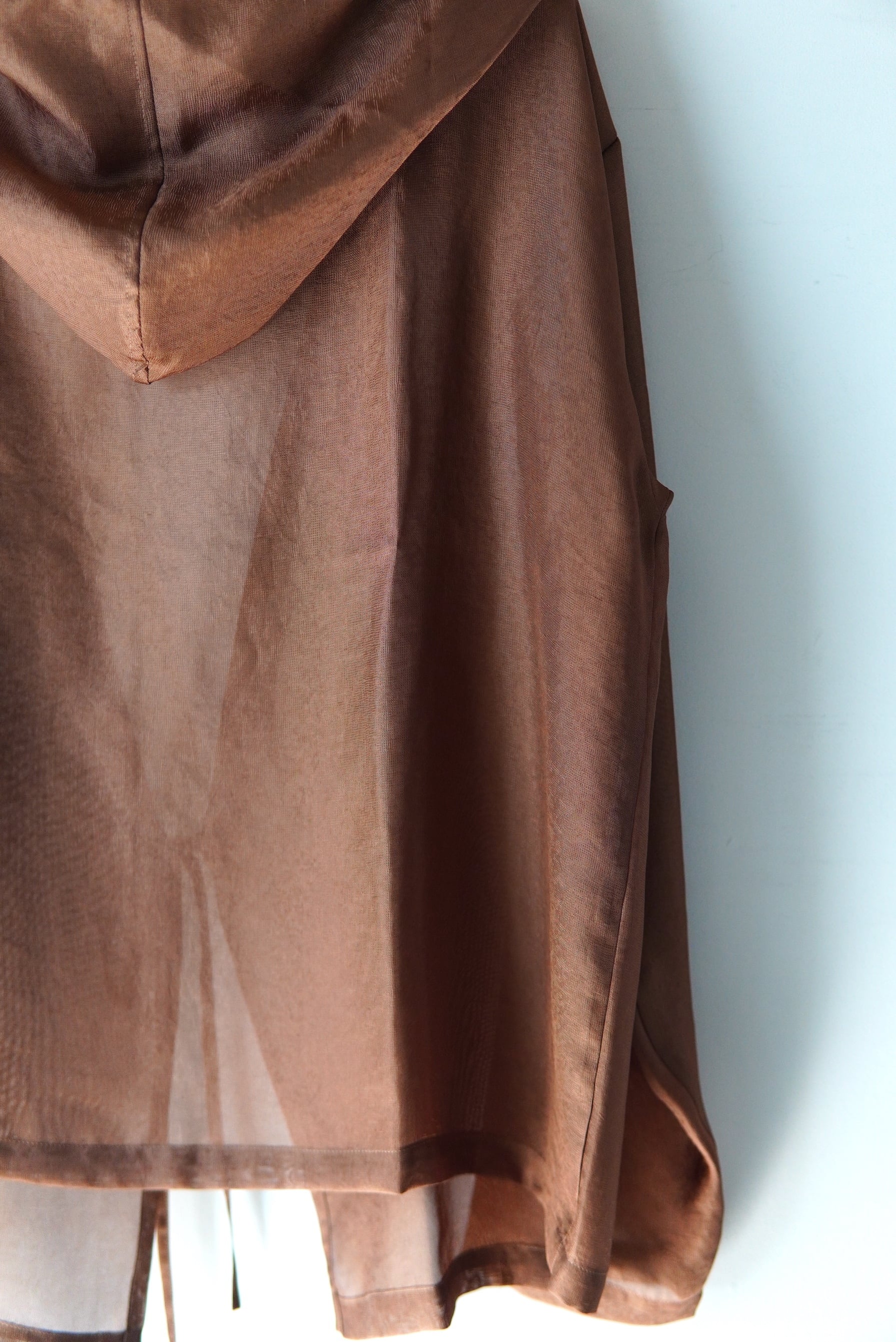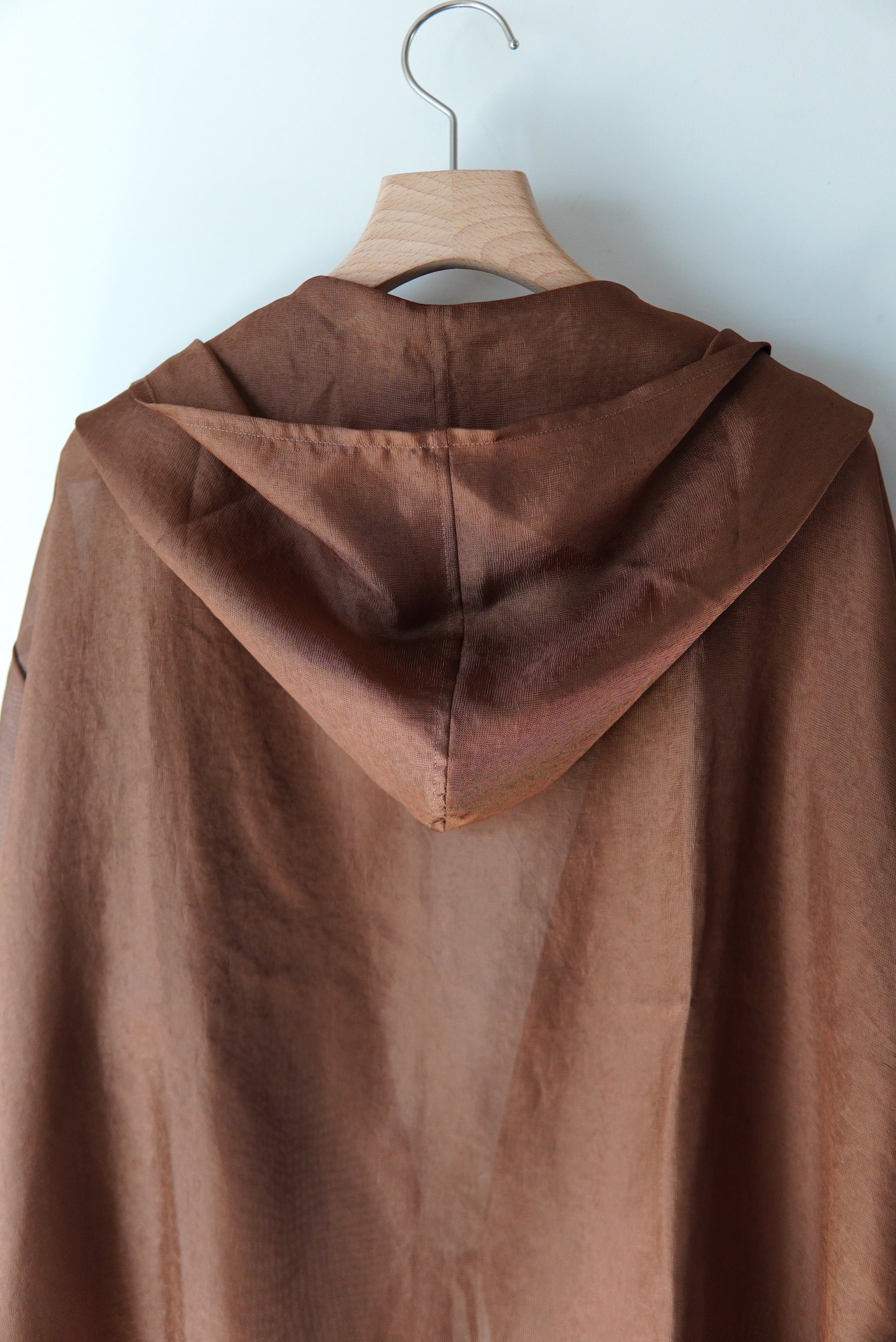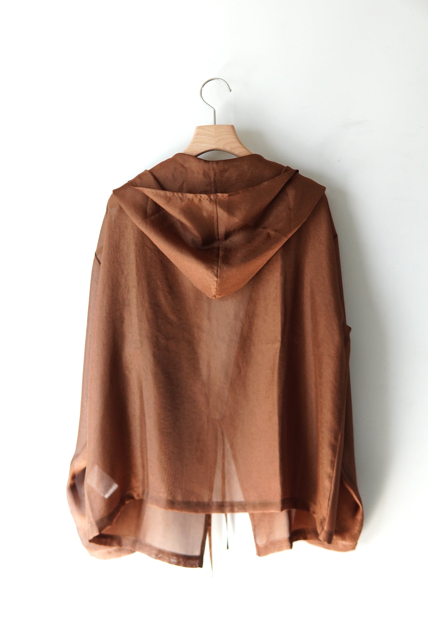 シルクの様な光沢感が特徴のリサイクル素材を使用したメッシュ織のフーディー。 風を通す非常に軽い素材のライトアウターです。 マテリアル ポリエステル 100% サイズスペック SIZE FREE 肩幅 58cm 身幅 60cm 着丈 65cm 袖丈 57cm