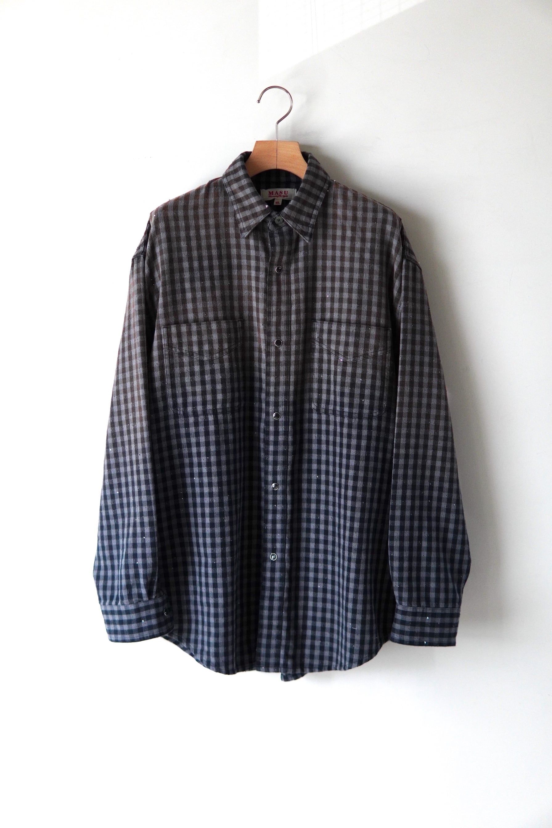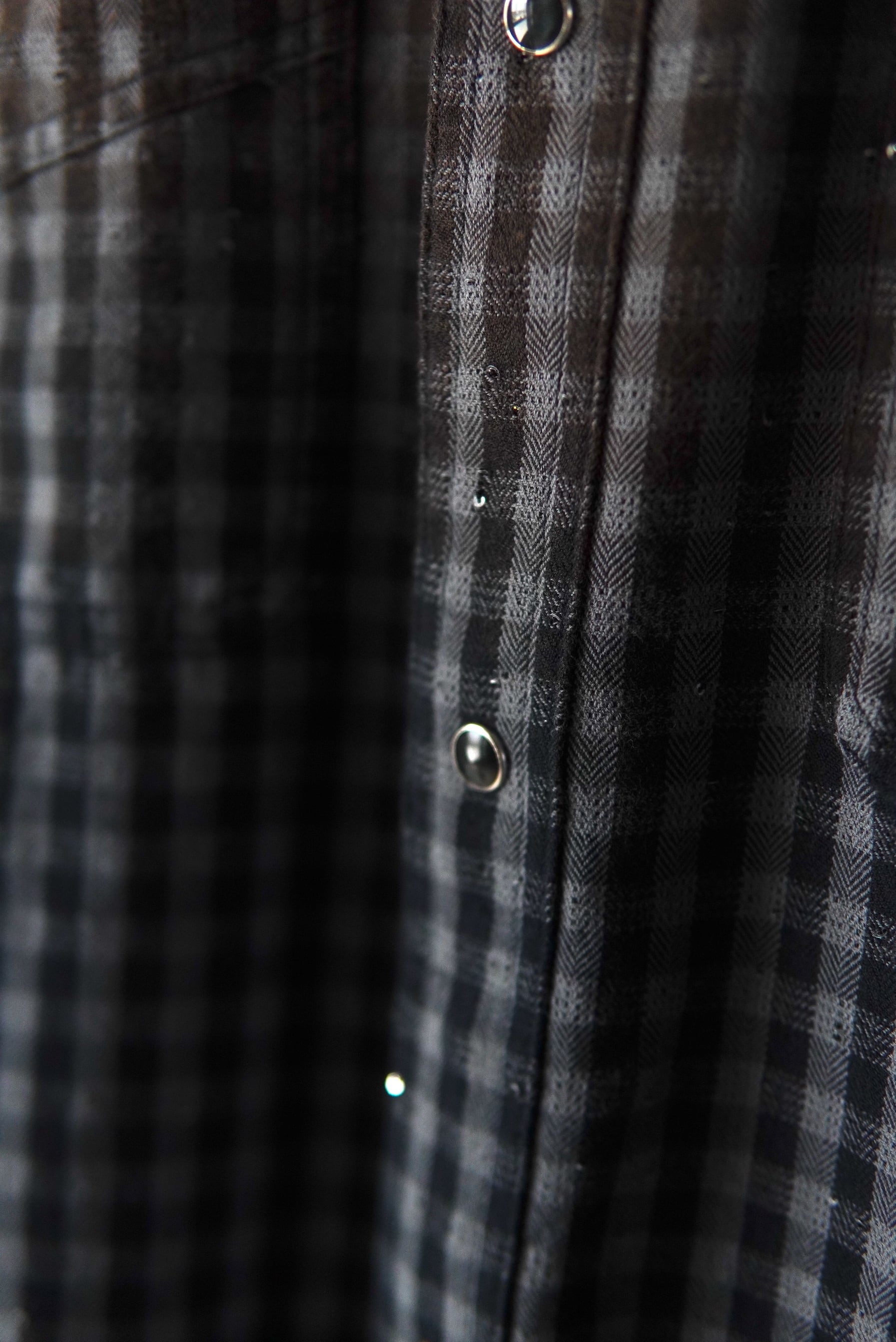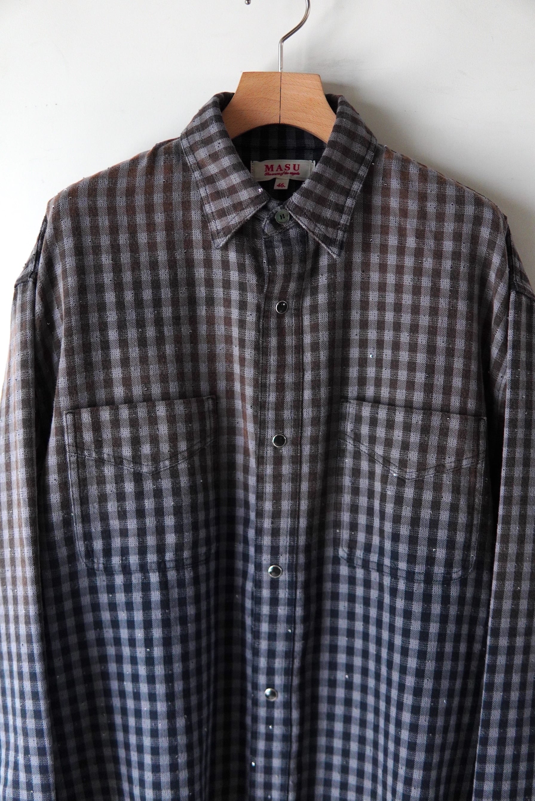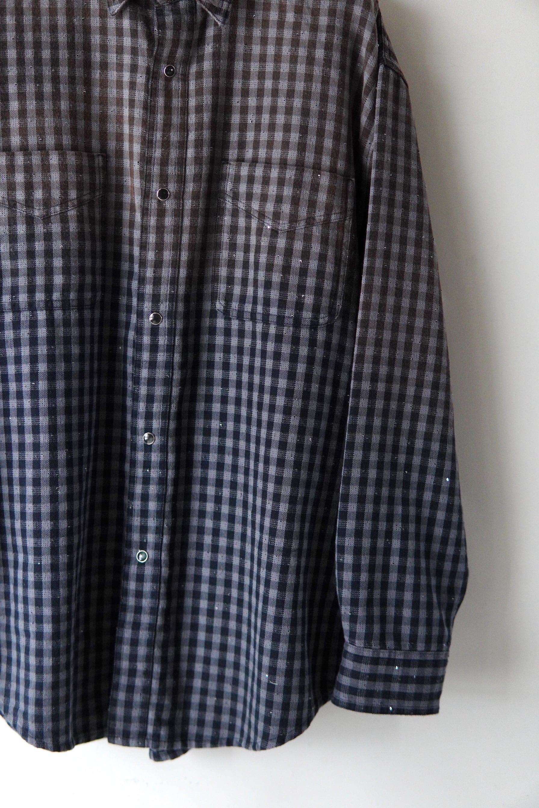 緯糸には細かなスパンコール糸が打ち込まれており、普遍的なギンガムチェックに、動くたびに光がこぼれるような煌めきを宿した。