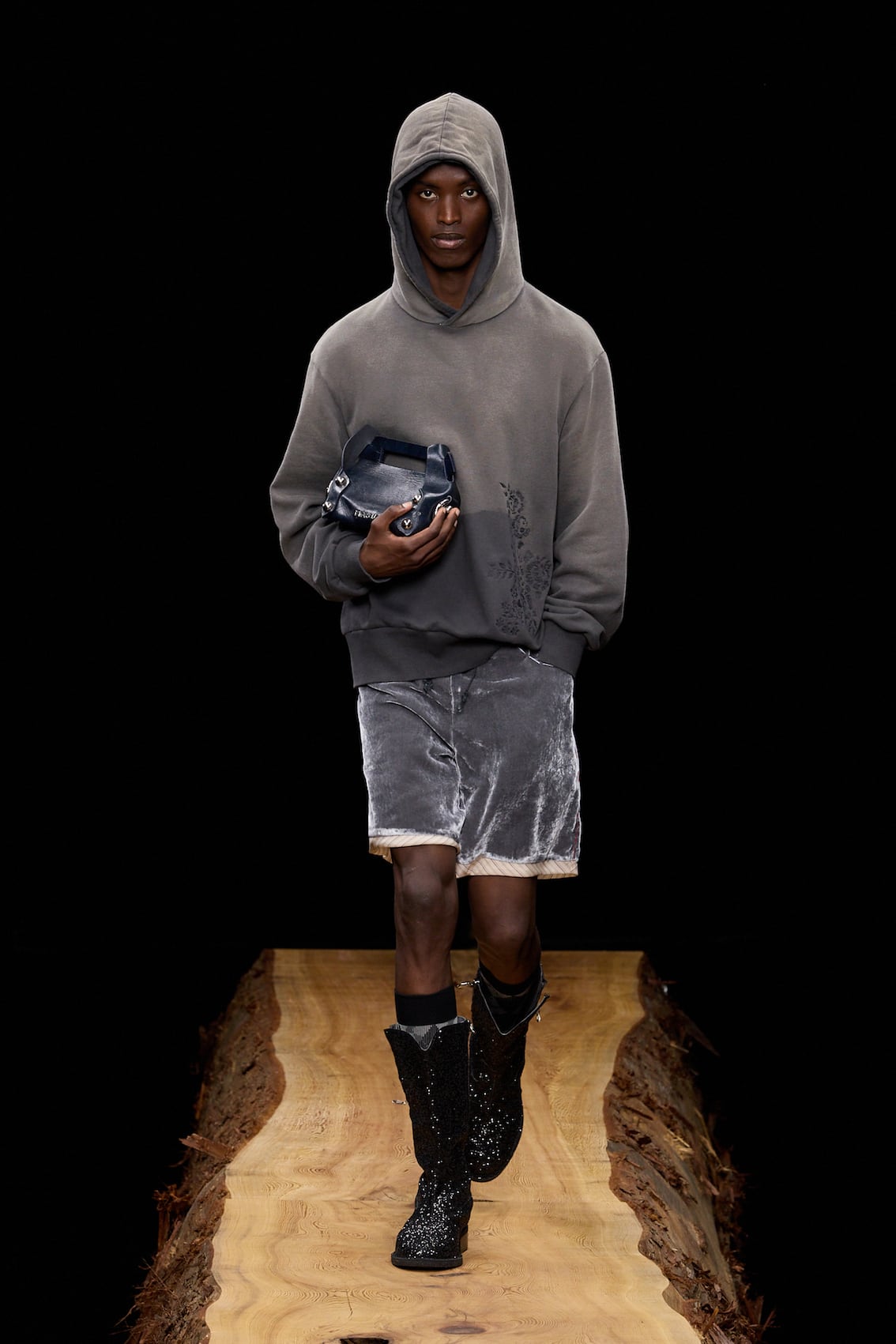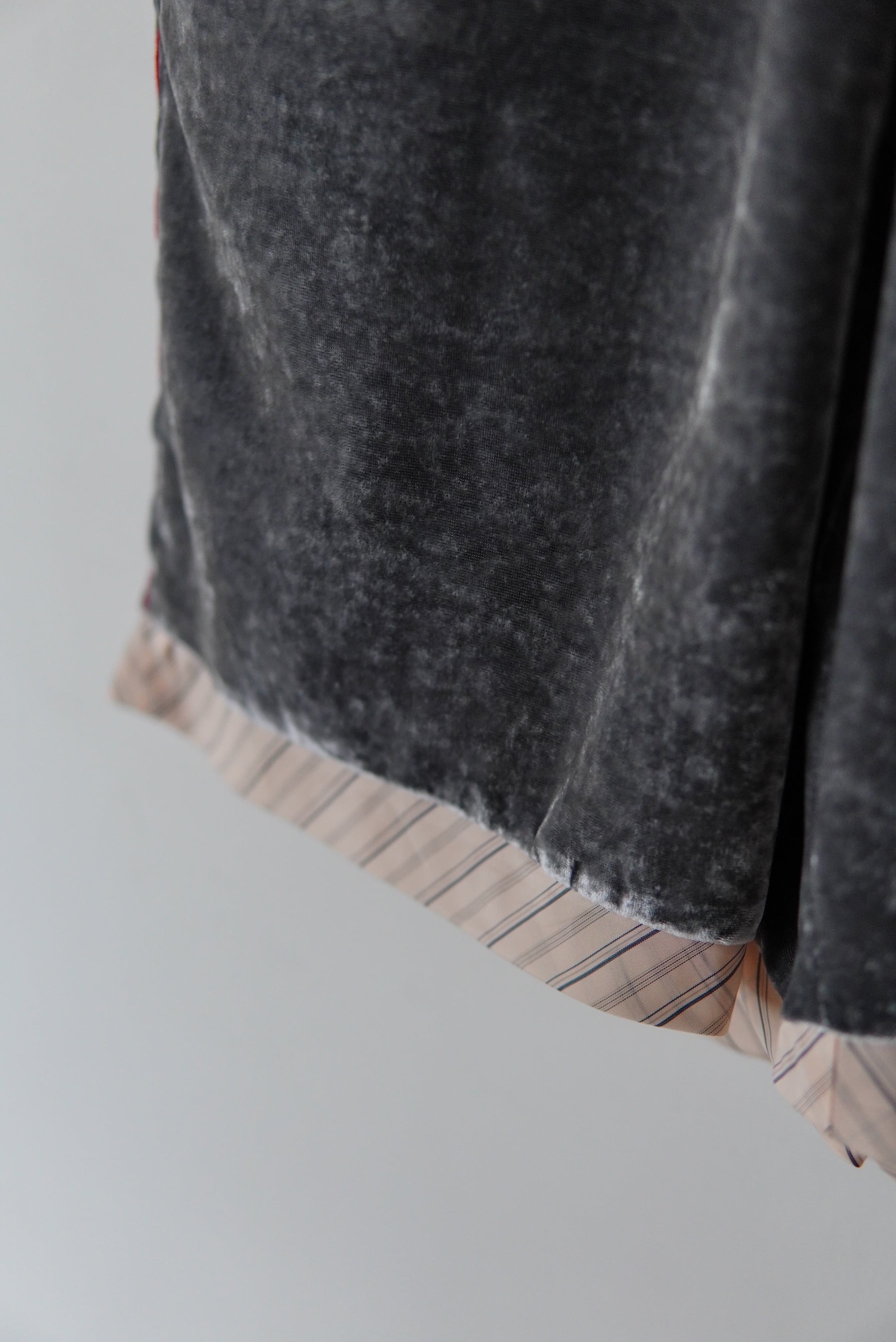 随所に残されたしつけ糸や、裾から計算外に吹きこぼれた裏地がアクセントとなっている。