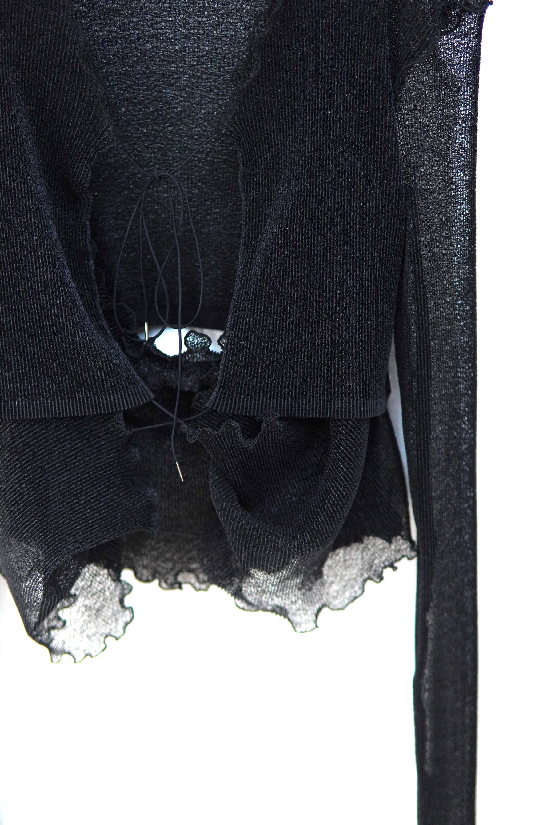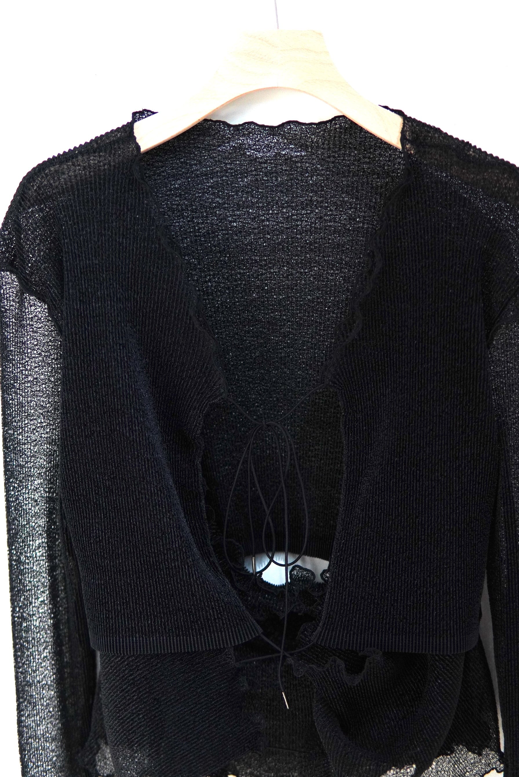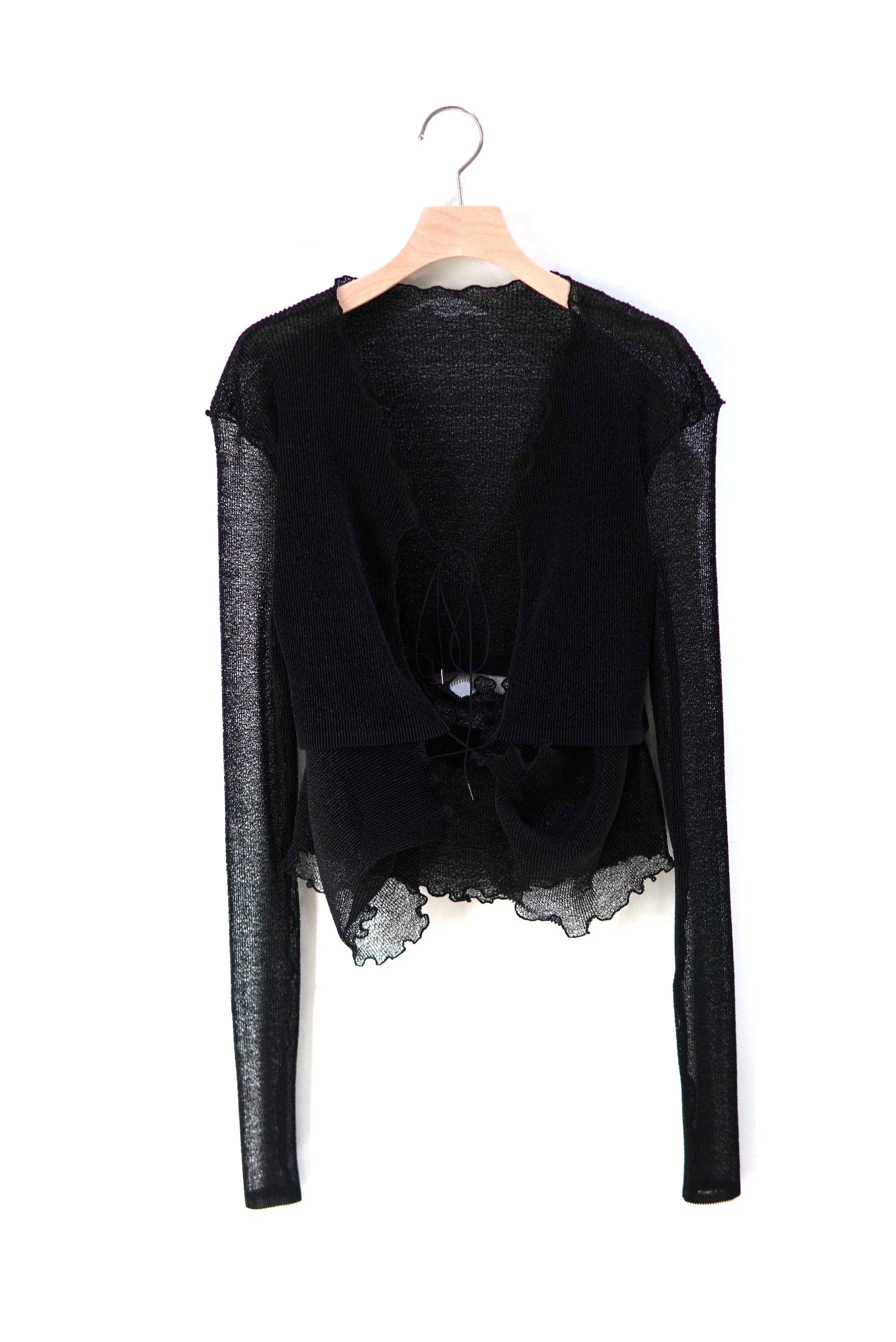 Jens / LOOFAH MESH PLEATS | LAYER&RIVER CARDIGAN / BLACK