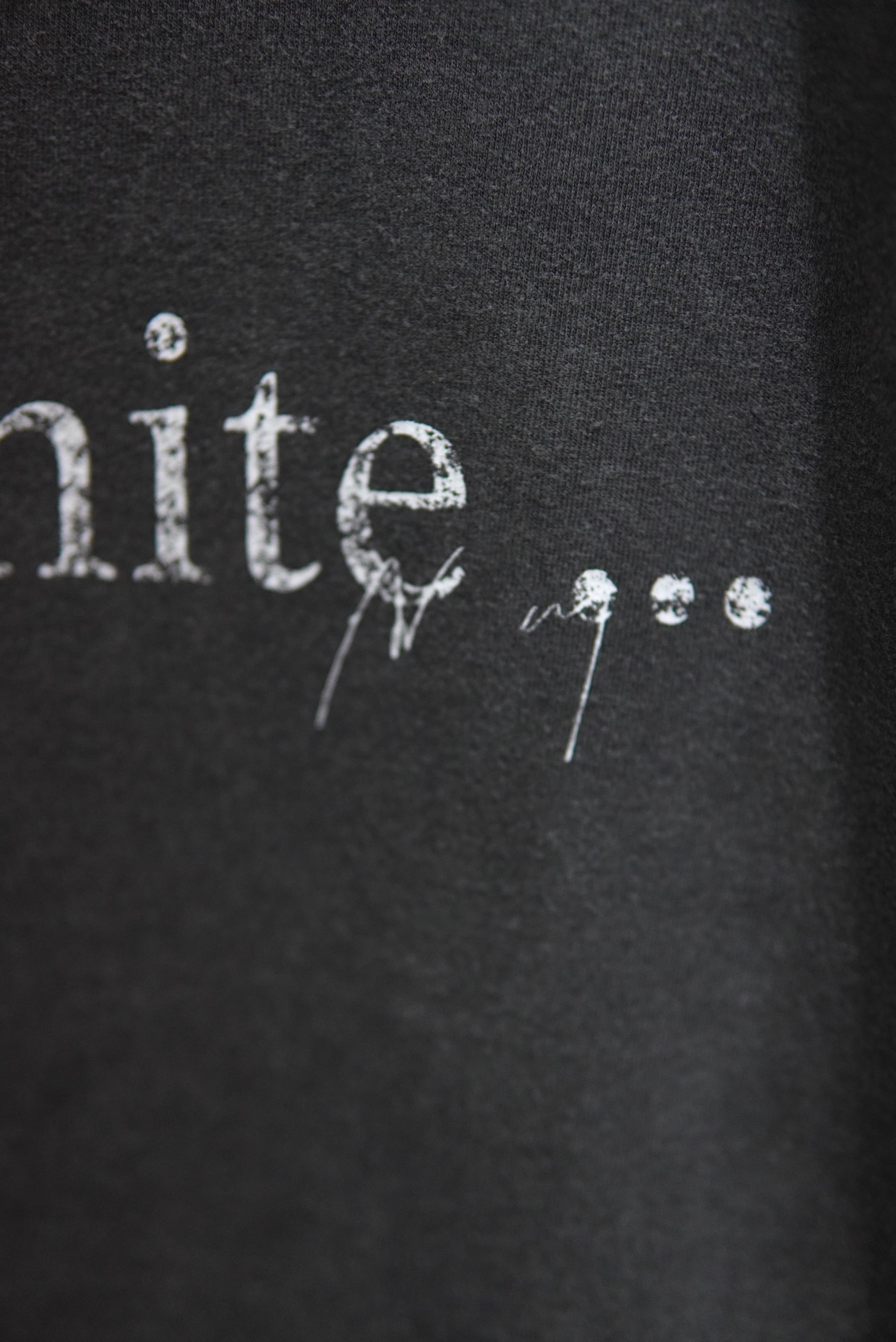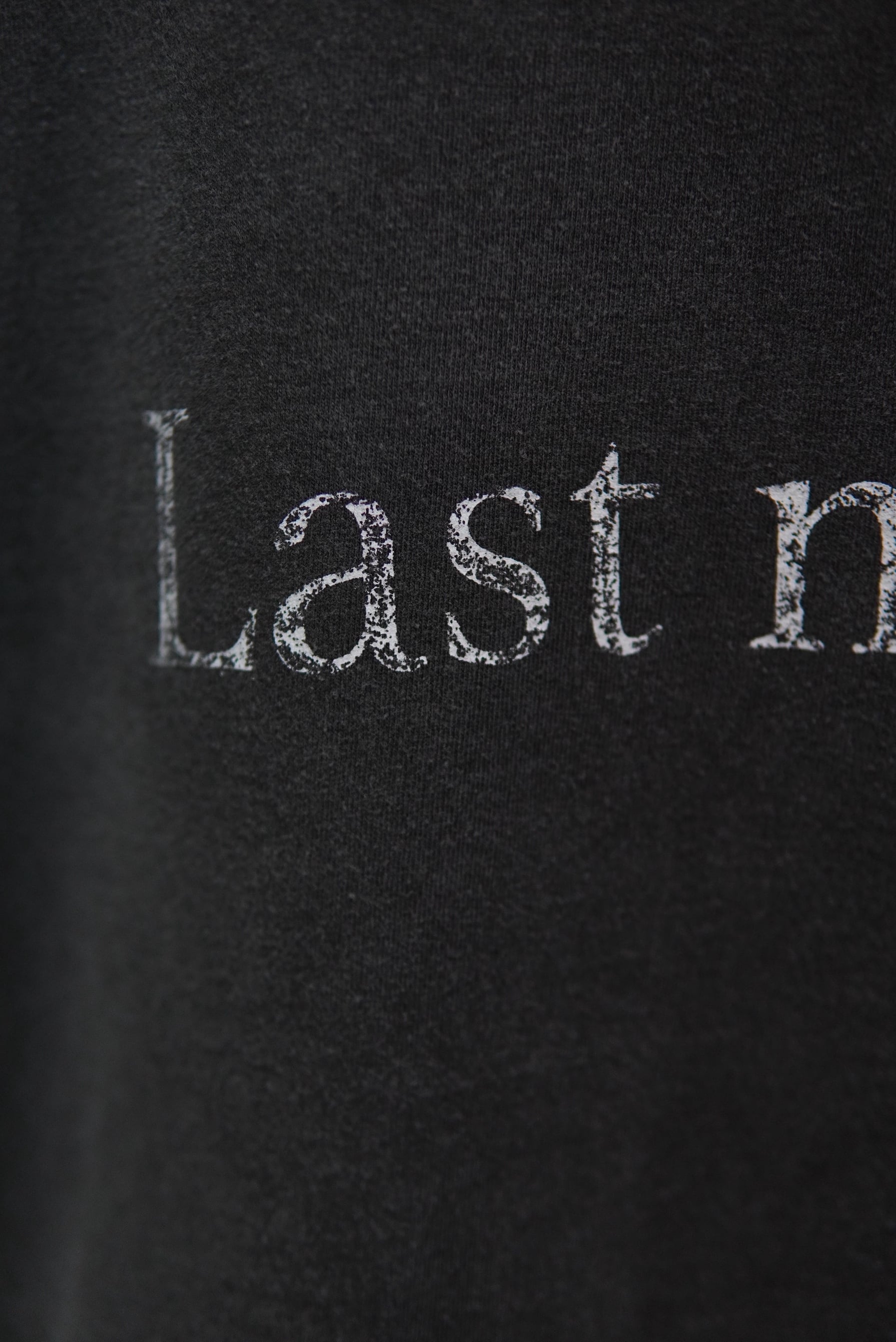 着古したように掠れた風合いでプリントを載せ、染色と加工でグラフィックを馴染ませる。