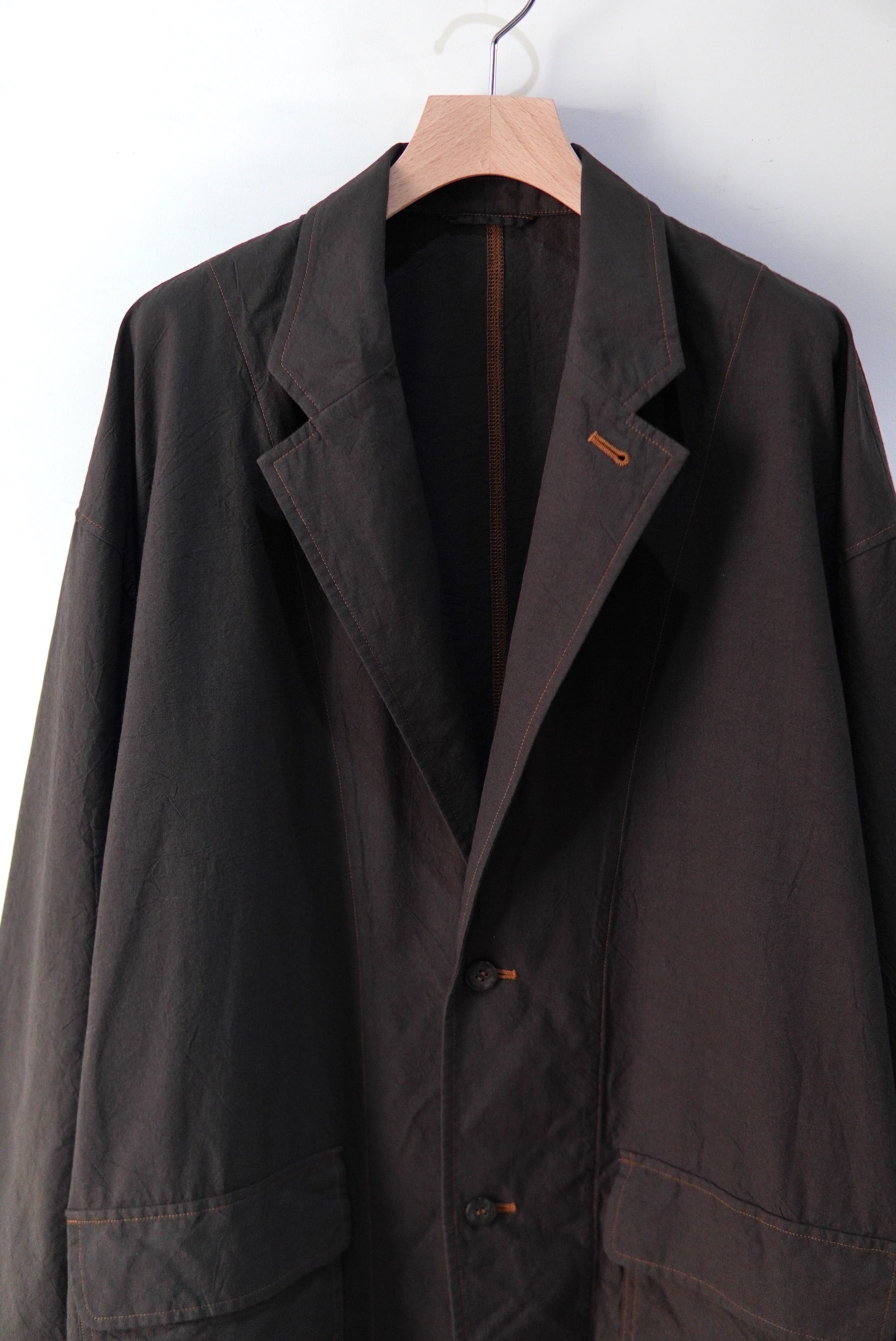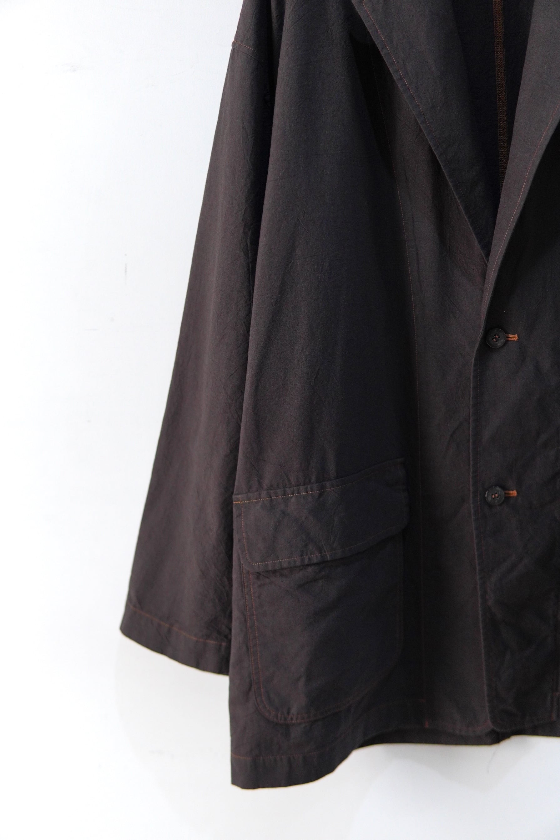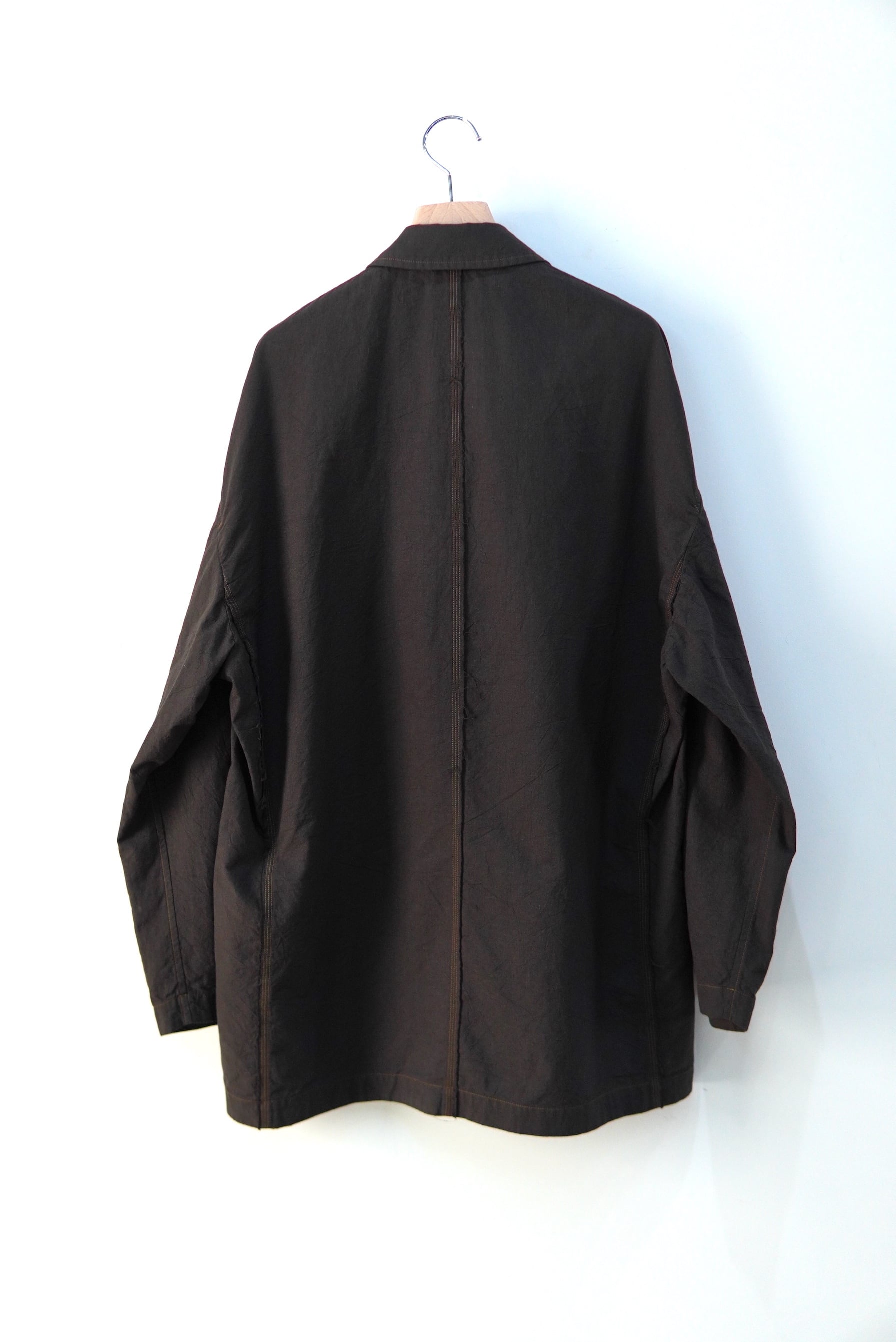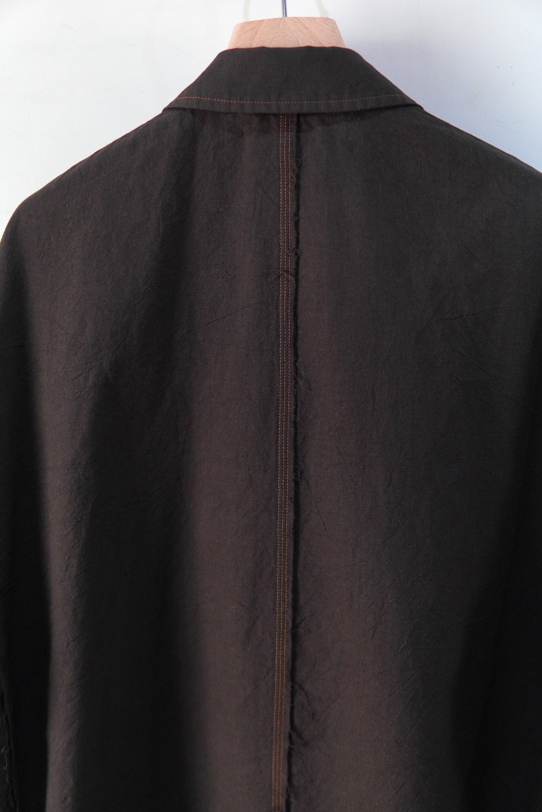 cale カディコットンは、インドで伝統的な手紡ぎ・手織りで作られる綿生地です。 1つ1つ手作業で紡がれた不均一な糸により、風通しが非常に良く、吸湿・速乾・保温性に優れた「着るほどに肌になじむ」柔らかな風合いが最大の特徴です。 その貴重なコットンで、非常に軽くて柔らかなタッチのジャケットを制作。 真夏でも羽織って頂けるほどの着やすさです。 MATERIAL Cotton 100% サイズスペック SIZE 3 着丈 81cm 肩幅 58cm 身幅 60cm 袖丈 55cm