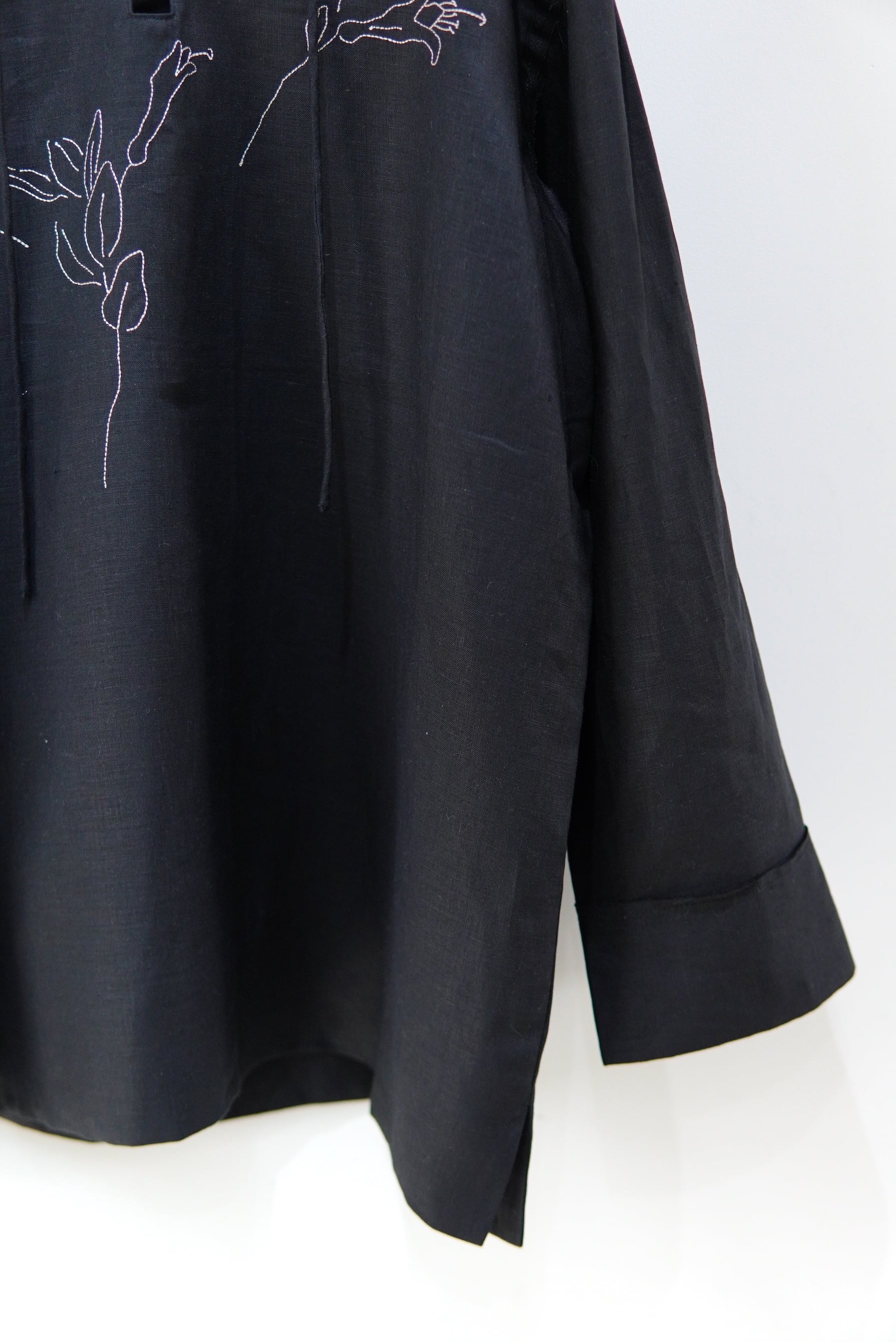 柔らかなリネン素材に、TANAKAらしい鳥やボタニカル刺繍を施しました。 ネックもレースアップでシルエットも程よく緩く、生地も薄めでシーズンも長く着て頂けます。 MATERIAL 100% Linen サイズスペック SIZE S 着丈 72cm 身幅 56cm 肩幅 51.5cm 袖丈 54cm SIZE M - UNISEX - 着丈 75cm 身幅 59cm 肩幅 54cm 袖丈 56cm
