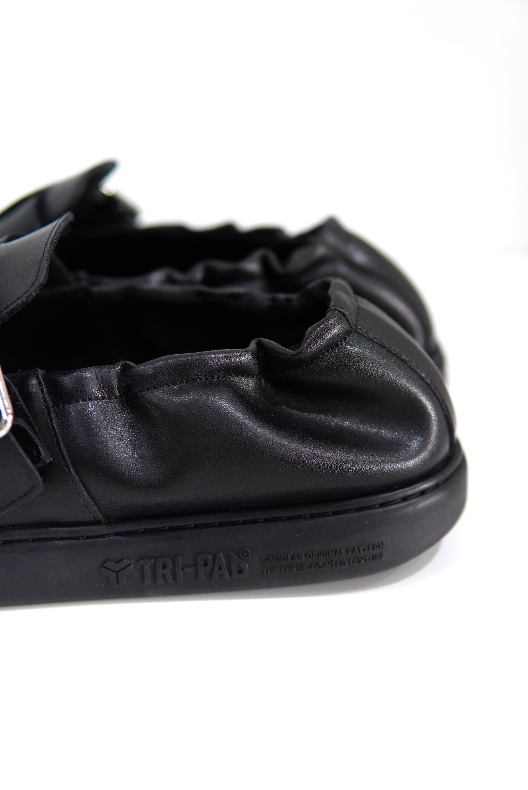 MATERIAL STEER / SYNTHETIC LEATHER 風合い豊かなSTEER HIDEをアッパーに使い、シングルストラップをイージーシューズにアレンジ。 低反発PU素材のインソールと、踵に設けたシャーリングがフィッティングを高め、快適な履き心地です。ソールにはしなやかなグリップ性の高いTRIPADを採用です。 ※24.0cmはBEAUTIFUL SHOESとなりますが仕様は全く一緒です。
