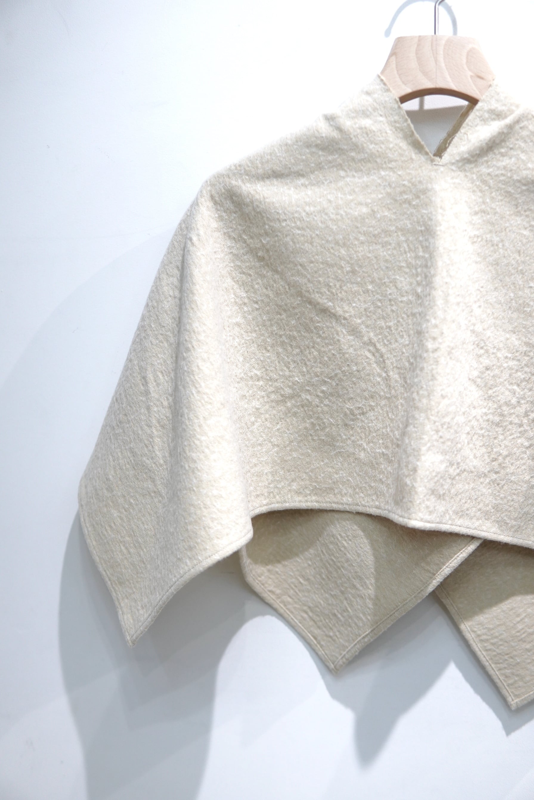 毛羽感のあるコットンウールミックスのクレープ地を使用したブローチ付きストール。